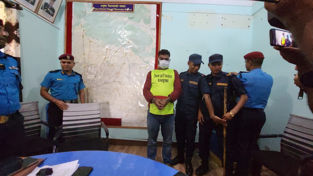 जिल्ला प्रहरी कार्यालय धनुषाले बिहिवार पत्रकार सम्मेलन गरि स्थायी घर धनुषाको बटेश्वर गाउँपलिका–५ शान्तिपुर भई पछिल्लो समय डेरा गरि जनकपुरधाम– ४ कटैयाँ चोरीमा बस्दै आएकी अञ्जली कुमारी यादवको हत्याको आरोपमा क्षिरेश्वरनाथ नगरपालिका–९ ईच्छापुरका ३५ वर्षीय रामबाबु साह पक्राउ गरि सार्वजनिक गरेका हुन् ।